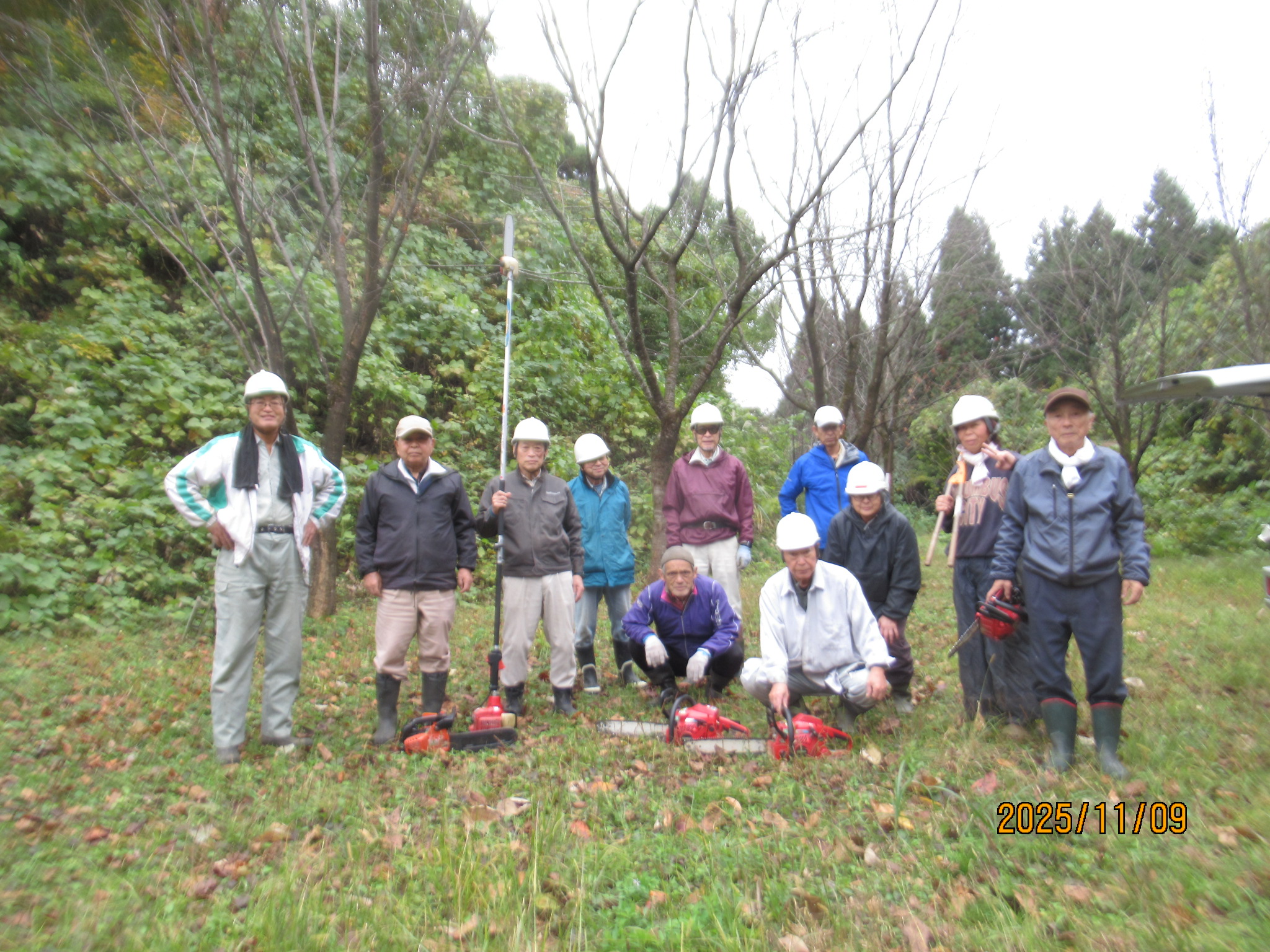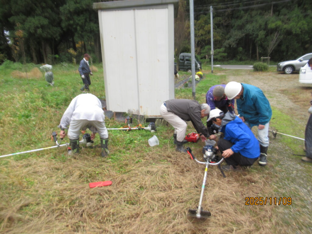 作業終了後、みんなで刈払機など機具類の油抜きなどをしました