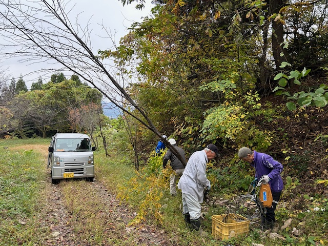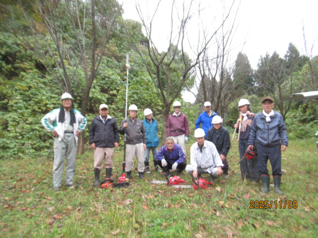 作業を終え、刈払機やチェーンソーの混合油抜きなどの道具類の片付けを行った後、恒例のお土産持ち帰り’じゃんけん大会’をしました。