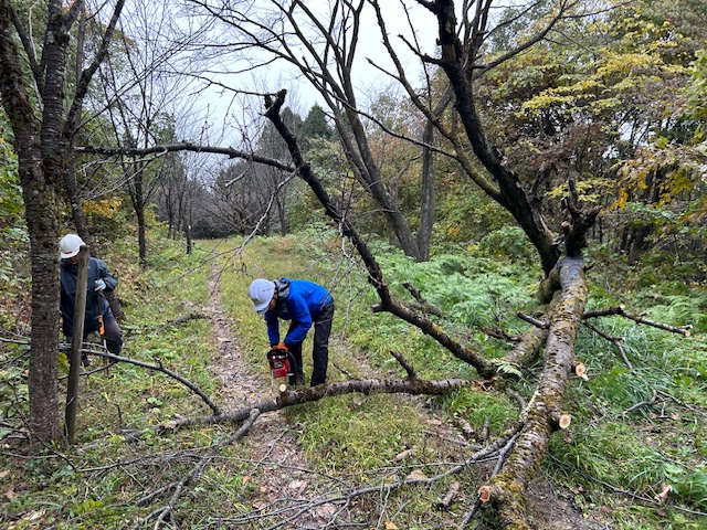 同じくB班。林道に横たわったオオヤマザクラの老木の処理