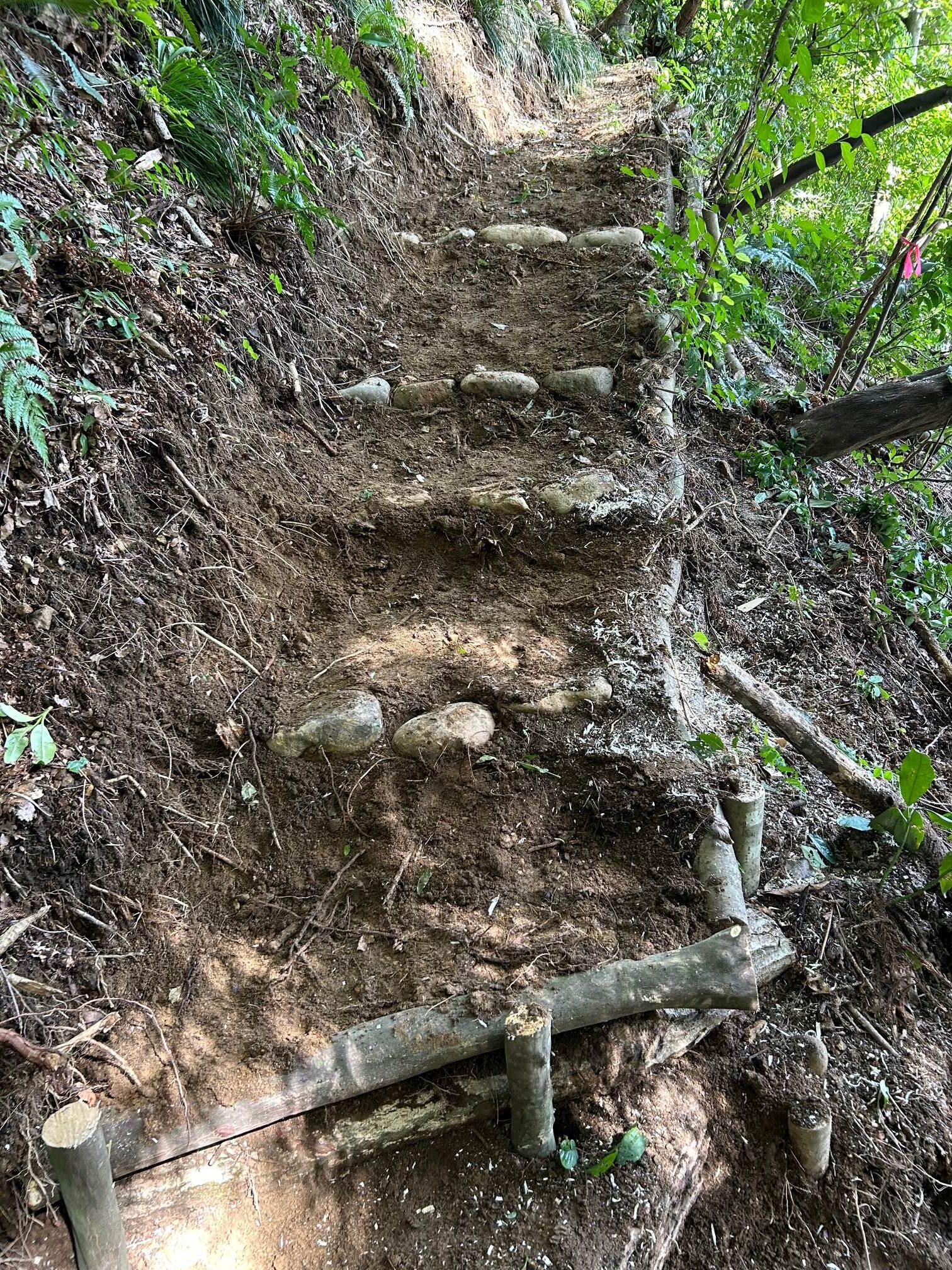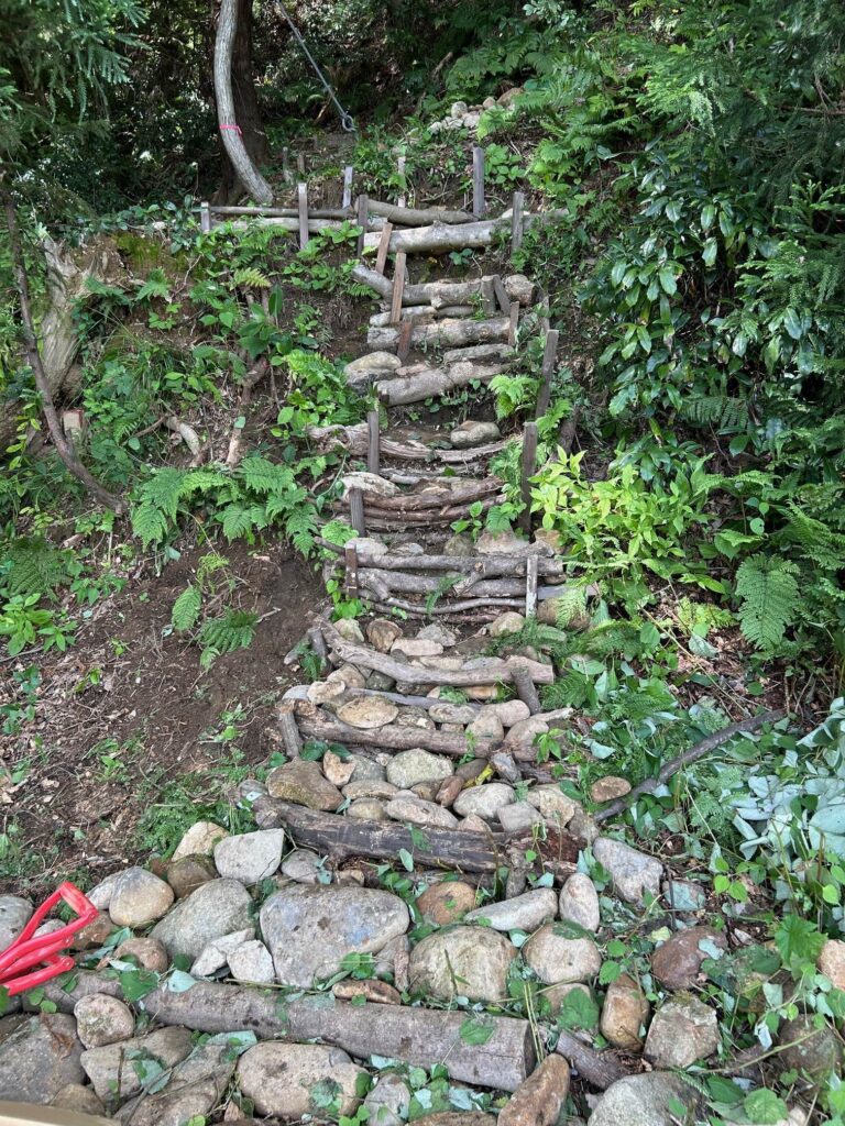 作業後の状況。緩い土の坂でしたが、石を入れて階段にしてみました